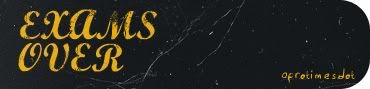I am so happy you dun even understand. I missed Ugly Betty last week, drank coffee during the whole exam period and slept at 1am every night to study, so my efforts better not go to waste. Now i'm living on a prayer, praying hard that i'll achieve good results. I understand some of you still got ur examinations going on, so continue to work hard lar okey. BIO paper was hard i dun even want to talk about it. See lah, last minute study. It sometimes works though. Till then, we're living on a prayer..